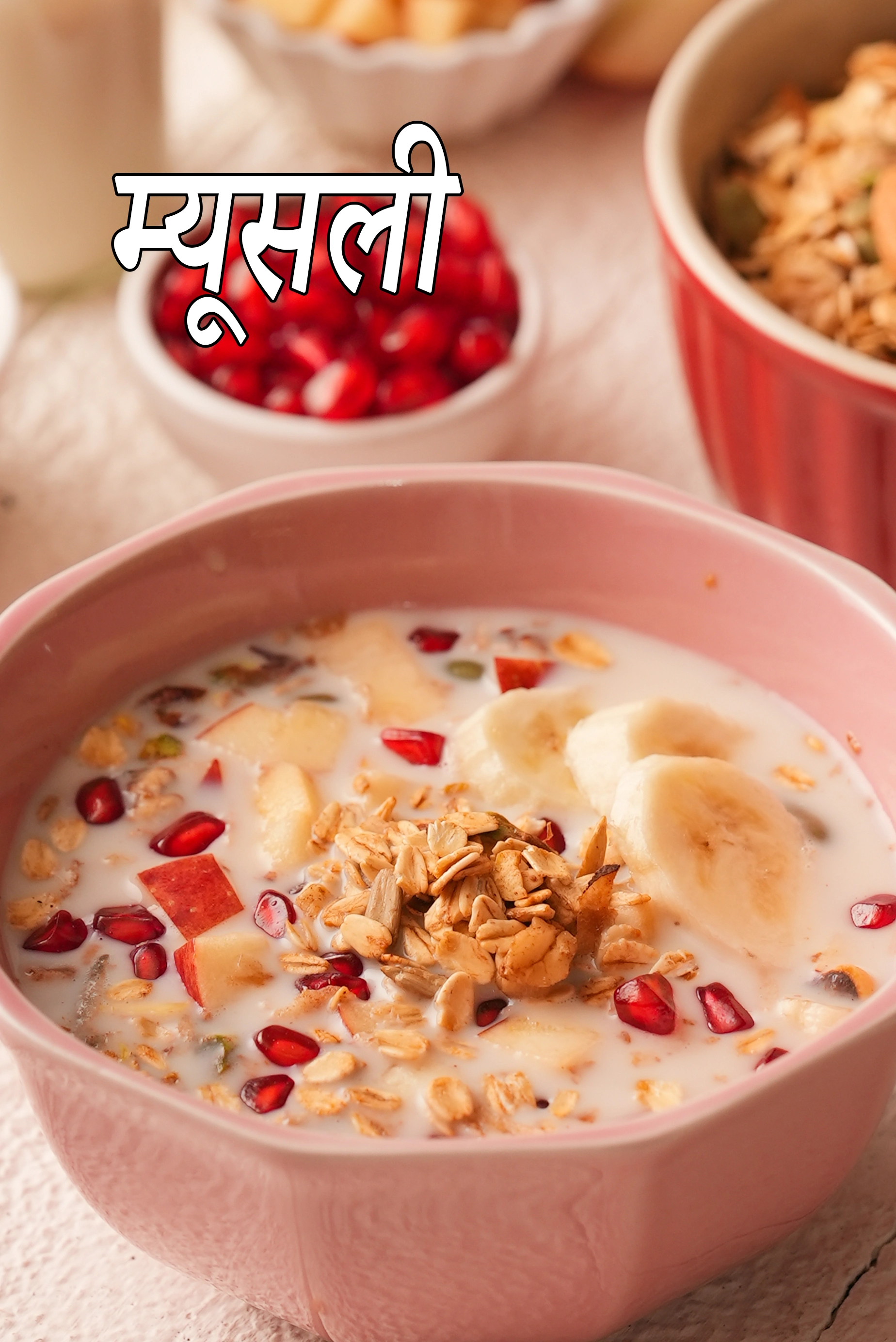 मूसली रेसिपी | ताज़े फलों के साथ मूसली | दूध और फलों के साथ भारतीय स्टाइल मूसली | स्वस्थ नाश्ता मूसली |