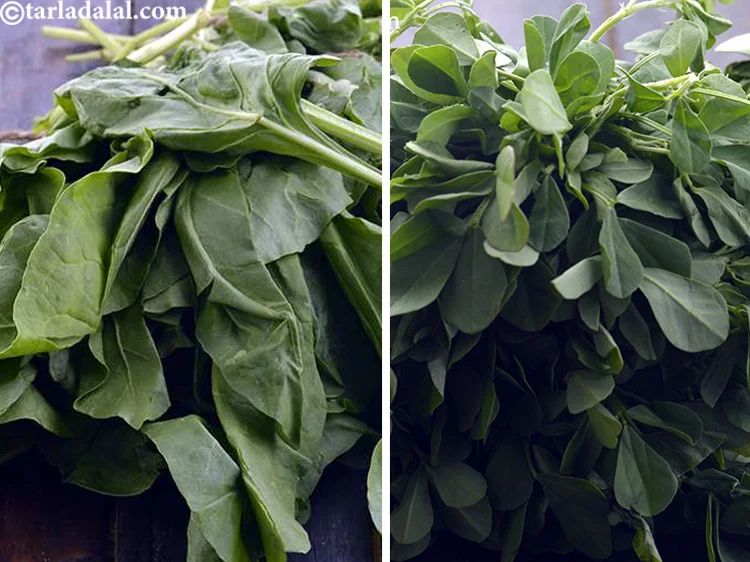 Wash the spinach (palak) and fenugreek leaves (methi) very well to get rid of all the dirt.