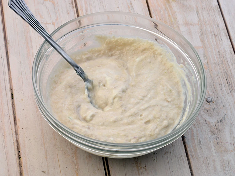 - Transfer the paste into a bowl, add the curds and salt and mix well. Keep aside.