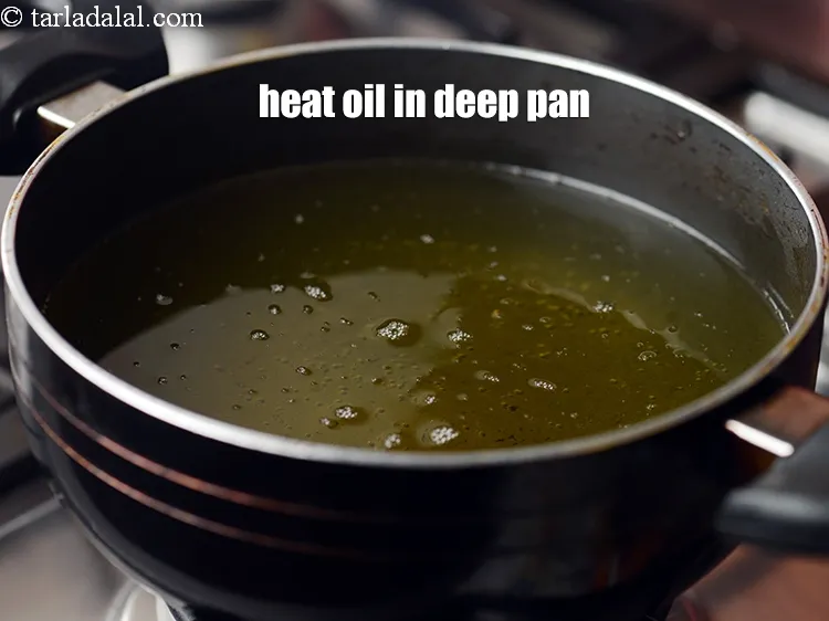 - Heat the oil in a deep non-stick pan, drop spoonful of the mixture using your fingers and deep-fry a few pakoras at a time on a medium flame till they turn golden brown in colour from all the sides. Drain on an absorbent paper.