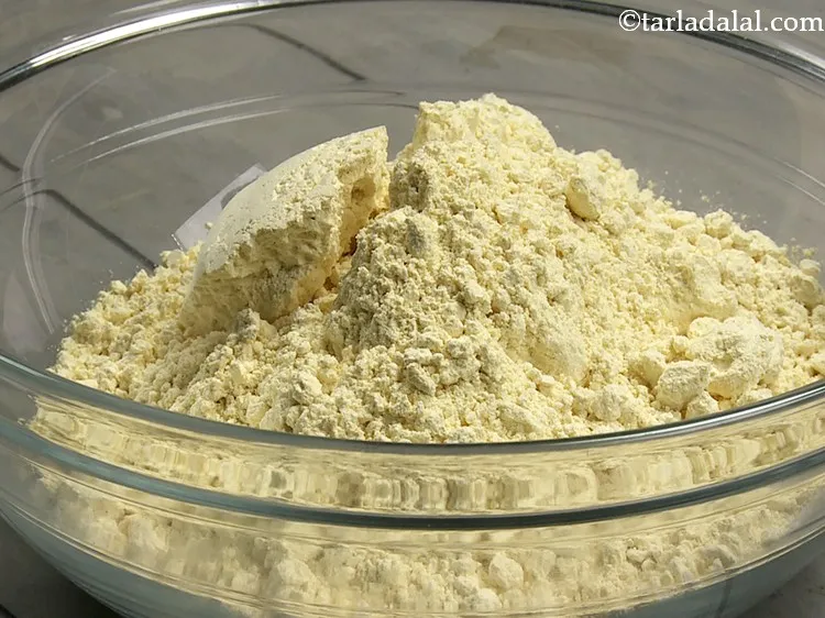 For preparing the dough for spinach mint sev, in a deep bowl, take rice flour. Chawal ka atta provides that extra crispy texture to the sev.