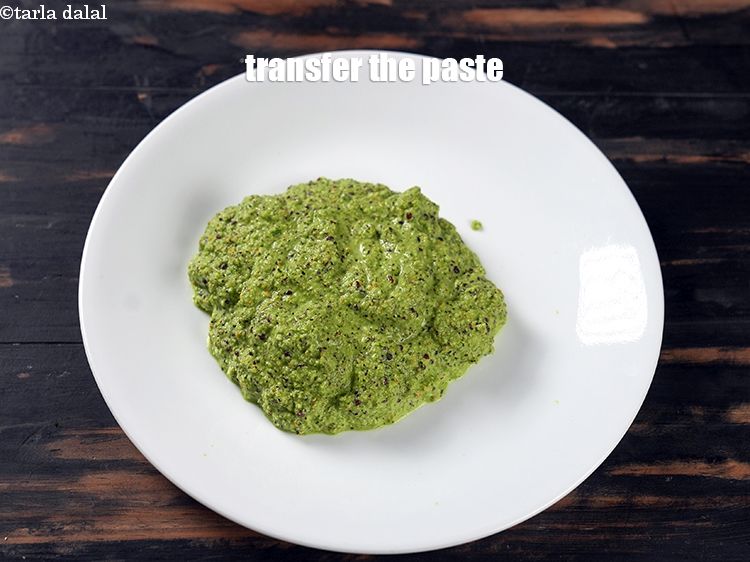 - To make paneer bhapa, combine the grated coconut, mustard seeds, green chillies, coriander and 1/2 cup water in a mixer jar. Blend it into a paste.