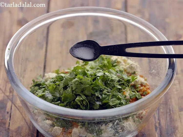 - Combine all the ingredients along with ½ cup of water in a deep bowl and mix well. Keep aside.