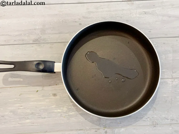 पनीर ओपन टोस्ट का टॉपिंग बनाने के लिए | पनीर टोस्ट | पनीर शाकाहारी टोस्ट | हेल्दी पनीर टोस्ट | paneer toast recipe in hindi | एक नॉन स्टिक पैन में तेल गरम करें।