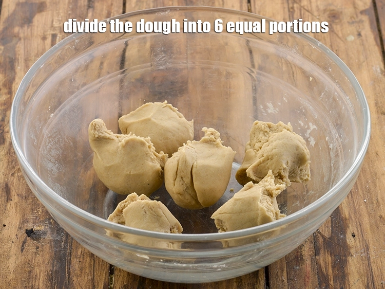 For making triangular shaped paratha | plain paratha | basic Punjabi paratha | Indian flatbread | healthy whole wheat flour paratha | first, divide the dough into 6 equal portions.