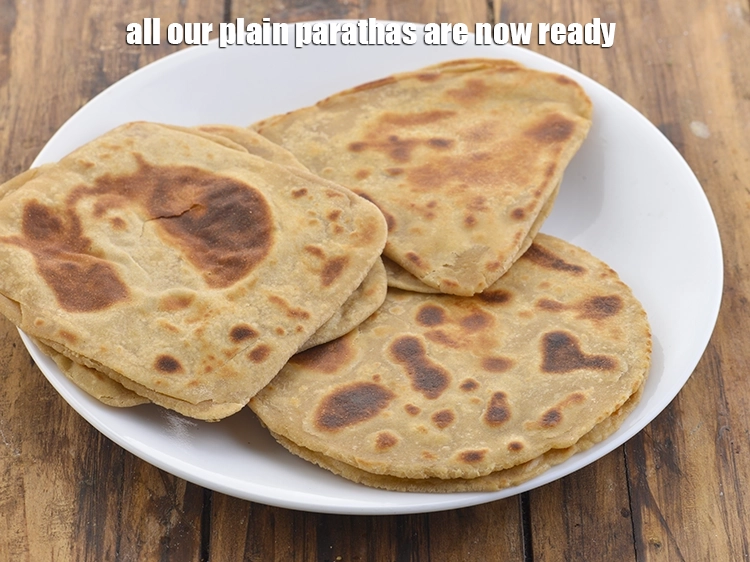 अब हमारे सारे सादे पराठे बनकर तैयार हैं. इसके अलावा, आप उन्हें आधा पका सकते हैं और बाद में उपयोग के लिए फ्रीज कर सकते हैं। पराठों को फ्रीज करना सीखें।