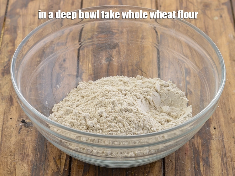 पराठा रेसिपी के लिए आटा बनाने के लिए | सादा पंजाबी पराठा | हेल्दी गेहूं का आटा पराठा | paratha recipe in hindi | एक गहरी कटोरी में 1 कप गेहूं का आटा (whole wheat flour, gehun ka atta) लें। सादा पराठा सबसे आसान भारतीय फ्लैटब्रेड रेसिपी है जिसमें अन्य व्यंजनों की तरह मैदा का उपयोग नहीं किया जाता है। हालांकि भिन्नता के लिए कई लोग मैदा और गेहूं का आटा बराबर मात्रा में लेते हैं।