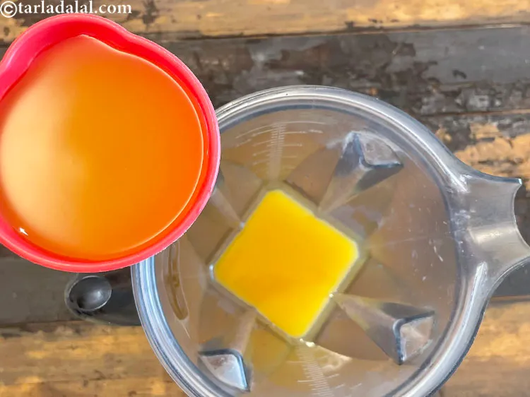 - सभी सामग्री को ज्यूसर में मिलाकर, मुलायम और षागदार होने तक पीस लें।