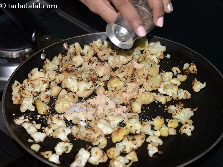 Step 8 – Sprinkle 4 tbsp of water. This is added so the cauliflower florets do not burn …