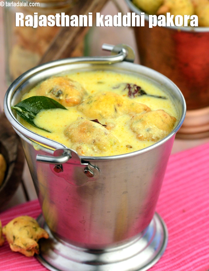 Rajasthani pakoda kadhi is made with freshly prepared pakodis of besan perked up with coriander, green chillies and these pakodis are floated in a mouth-watering kadhi.