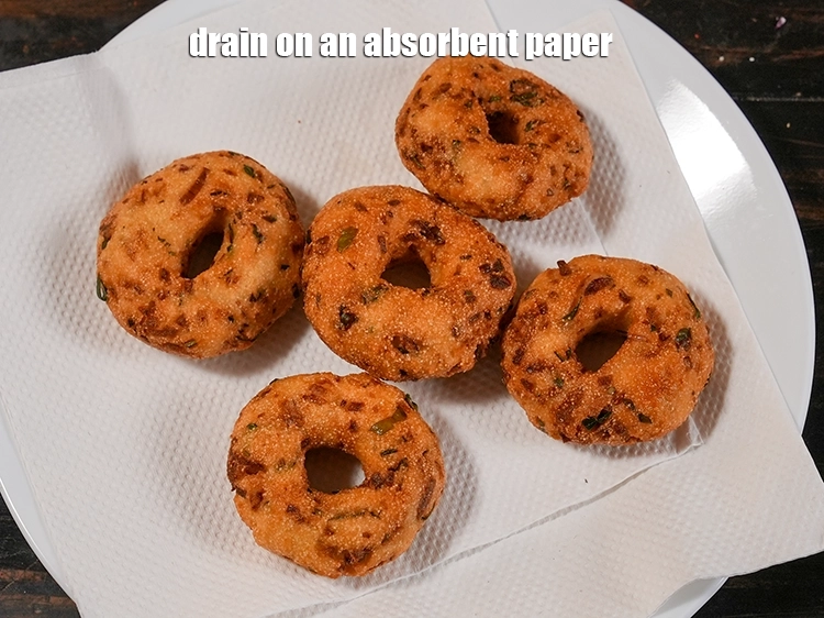 Using baking soda in exact proportion is necessary to get the perfect soft yet crunchy vada.