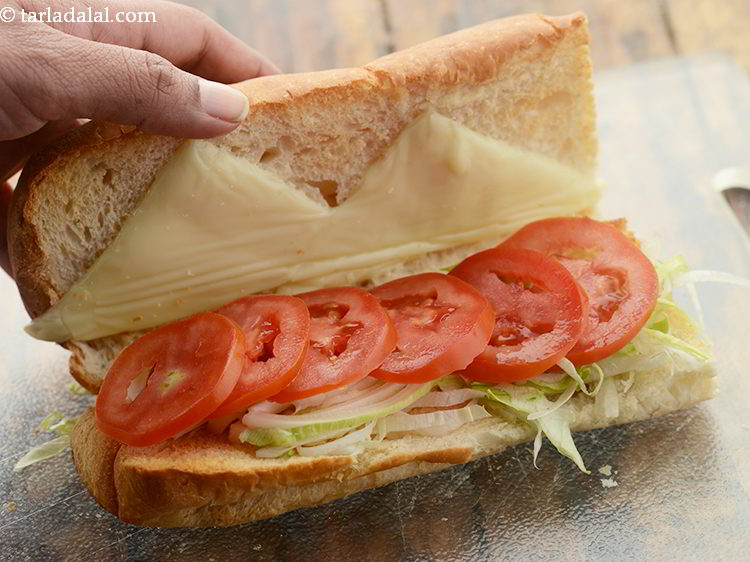 veg sub sandwich recipe | veggie delight | Indian style homemade veg subway | Video by Tarla Dalal