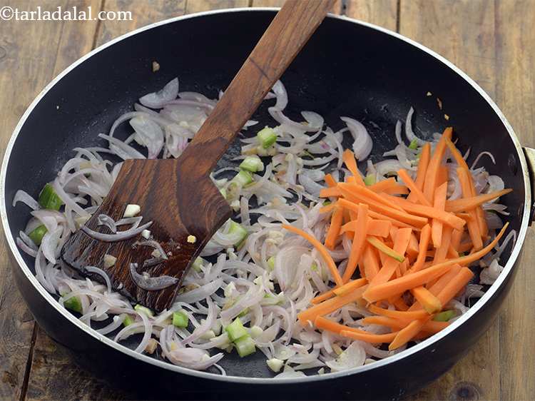 Step 19 – Add the carrot. It will add crunchiness to your Vegetable Chow Mein.