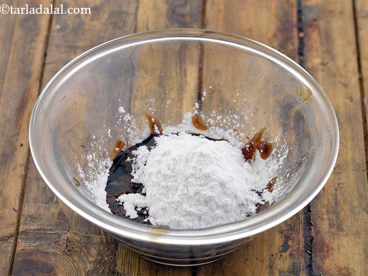 1. To make the vegetable chow mein recipe, combine the hoisin sauce, soy sauce, cornflour and ½ cup of water in a deep bowl, mix well and keep aside.