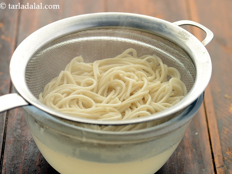 - Let all the water drain out and ensure that the noodles do not contain any moisture. Keep aside.