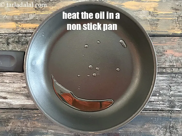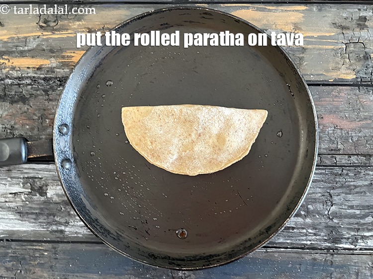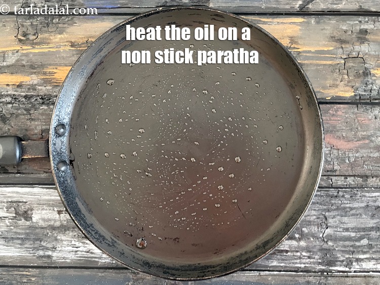 - Heat a non-stick tava (griddle) and cook the paratha, using ¼ tsp oil, till it turns golden brown in colour from both the sides.