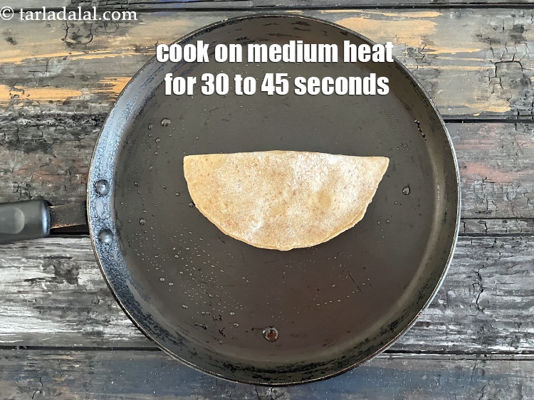 Cook on hot non-stick tava (griddle) on medium heat for 30 to 45 seconds.