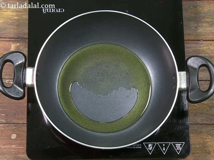 - Heat the oil in a deep non-stick pan, add a few baby potato halves at a time and deep fry till they turn golden brown in colour.