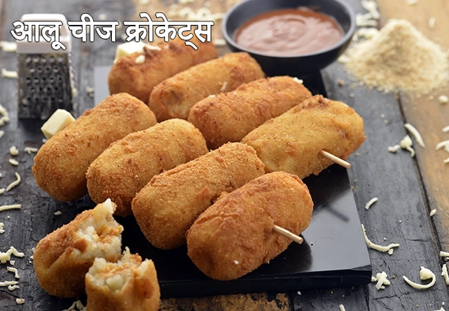 आलू चीज क्रोकेट्स — अंदर से क्रीमी और बाहर से कुरकुरा पार्टियों के लिए बेहतरीन।
