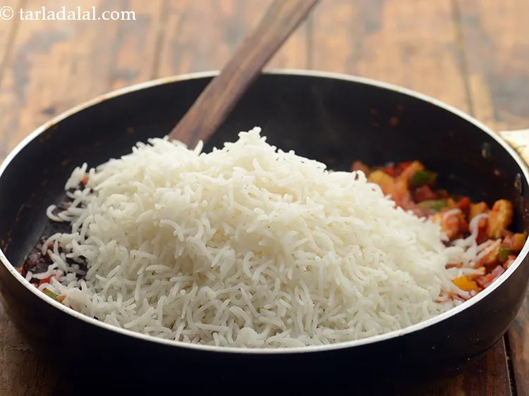 Add the rice. While we have used white rice, to make it nutritious, you can use brown rice, quinoa or broken wheat.