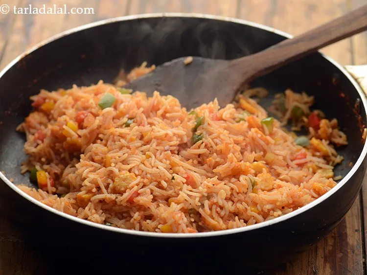 Add coloured capsicum. The use of red, yellow and green capsicum makes the rice vibrant and appetizing. Kids surely love colorful things so this is a good way to make them consume all veggies.