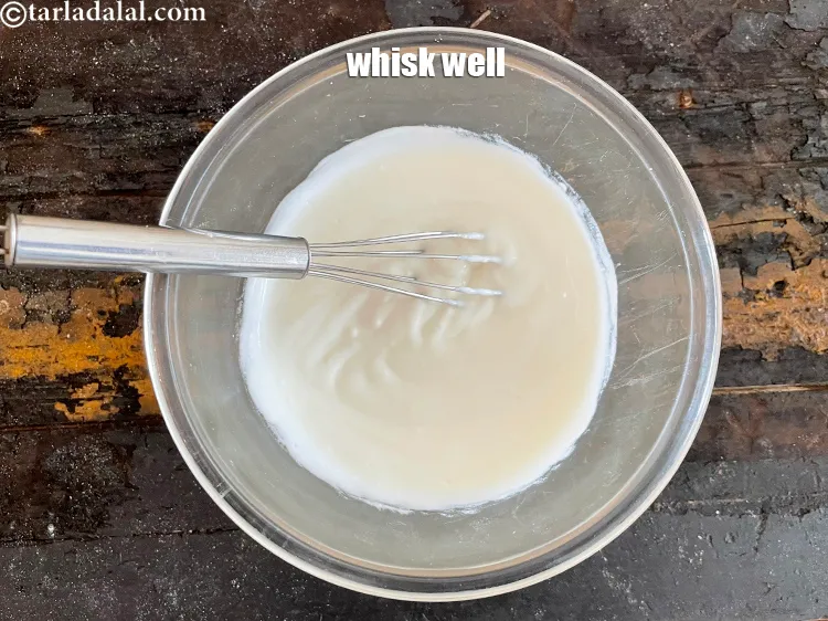 - दही और नमक को एक बाउल में डालकर अच्छी तरह फेंट लें और एक तरफ रख दें।