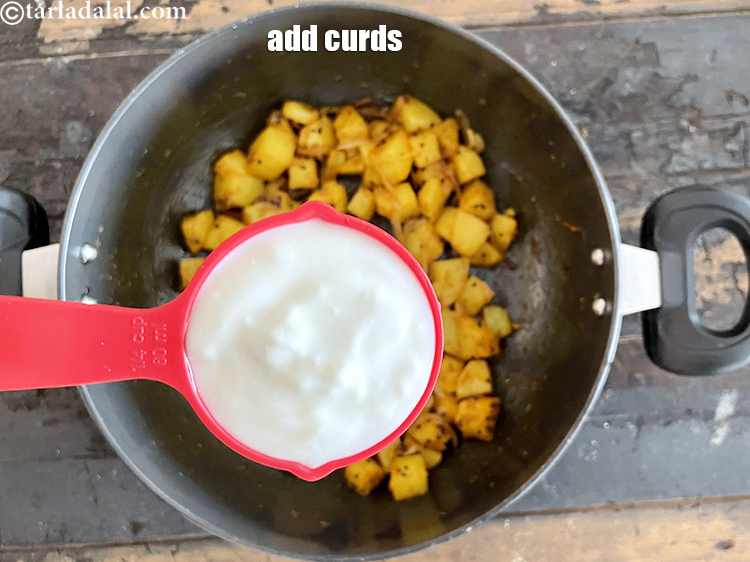आंच से उतारें और १/४ कप दही डालें।