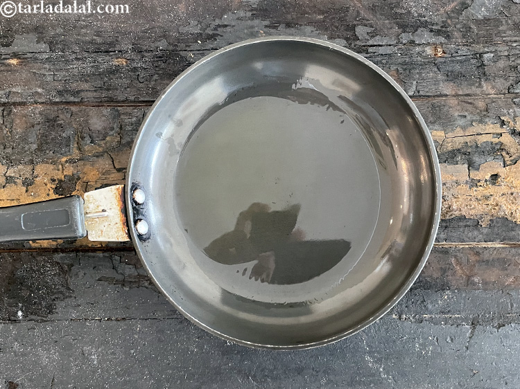 एक छोटे नॉन स्टिक पैन में १ टी-स्पून घी गरम करें।