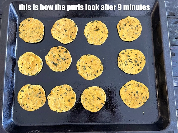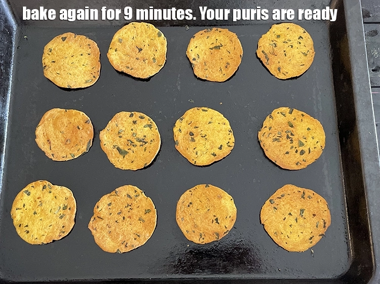 फिर से 9 मिनट तक बेक करें। आपकी पूरियाँ तैयार हैं।