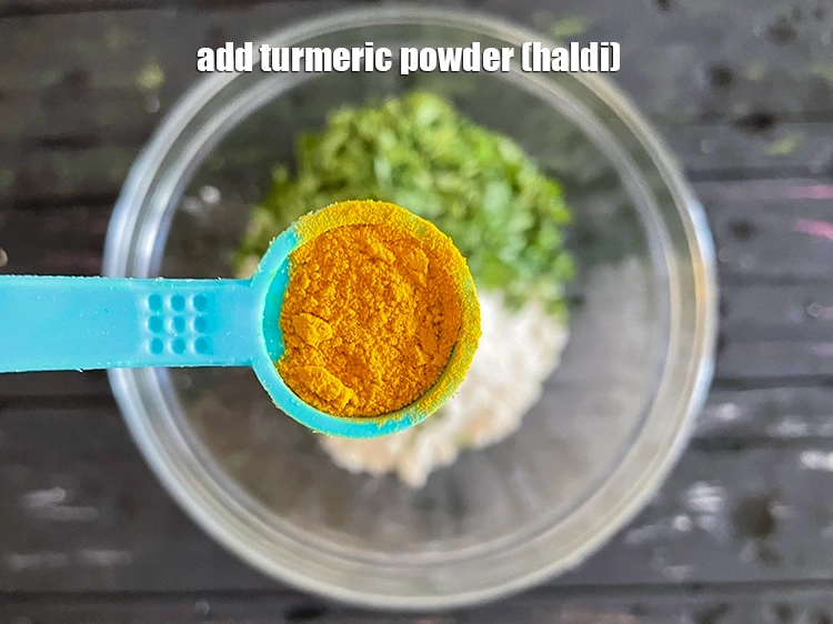 1/2 टी-स्पून हल्दी पाउडर (turmeric powder, haldi) डालें।