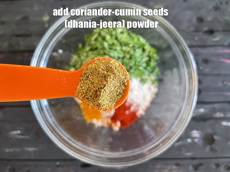 1 टी-स्पून धनिया-जीरा पाउडर (coriander-cumin seeds powder ) डालें।