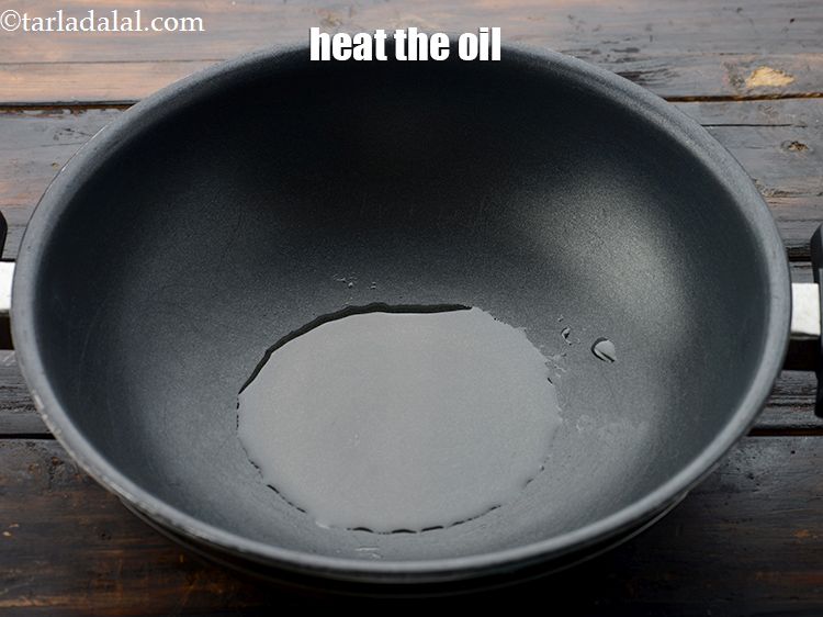 To fry bateta chips, heat the oil in a deep non-stick kadhai.