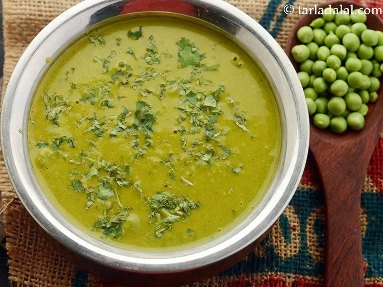 Serve healthy green peas dal immediately garnished with coriander leaves.
