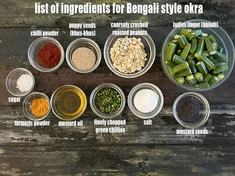 what is Bengali style okra sabzi made of ? See below image of list of ingredients for Bengali style okra sabzi.
