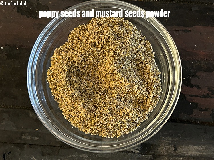 - Combine the poppy seeds and mustard seeds and blend in a mixer to a fine powder. Keep aside.
