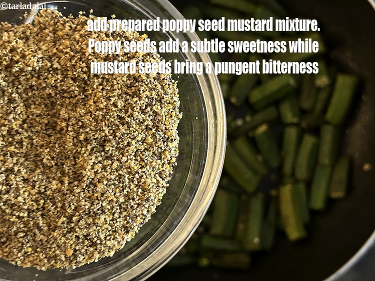Add poppy seeds (khus-khus). Poppy seeds have a distinct nutty flavor that complements the earthy taste of okra beautifully. When ground or made into a paste, poppy seeds add a subtle creaminess to the dish.