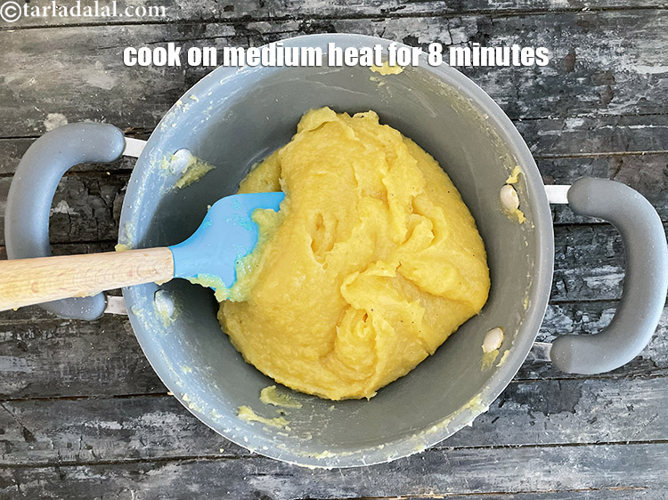 Cook on a medium flame for 7 to 8 minutes, while stirring continuously.