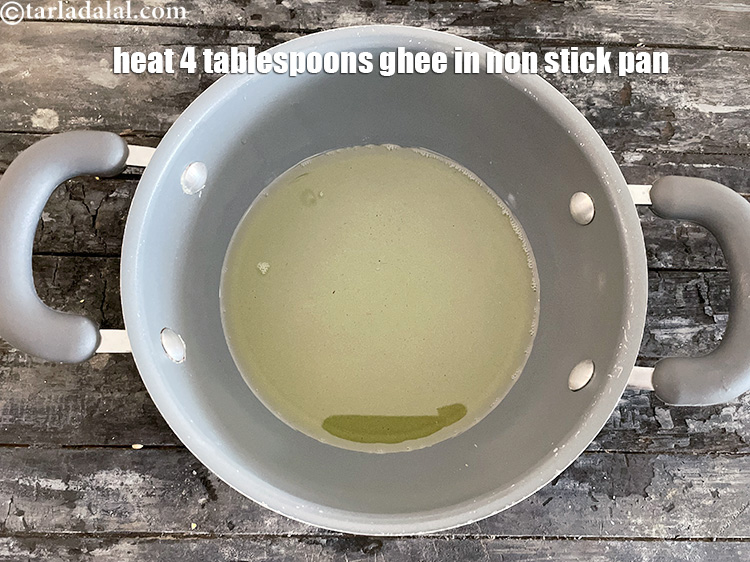 Heat the remaining ghee (4 tablespoons) in a broad vessel.