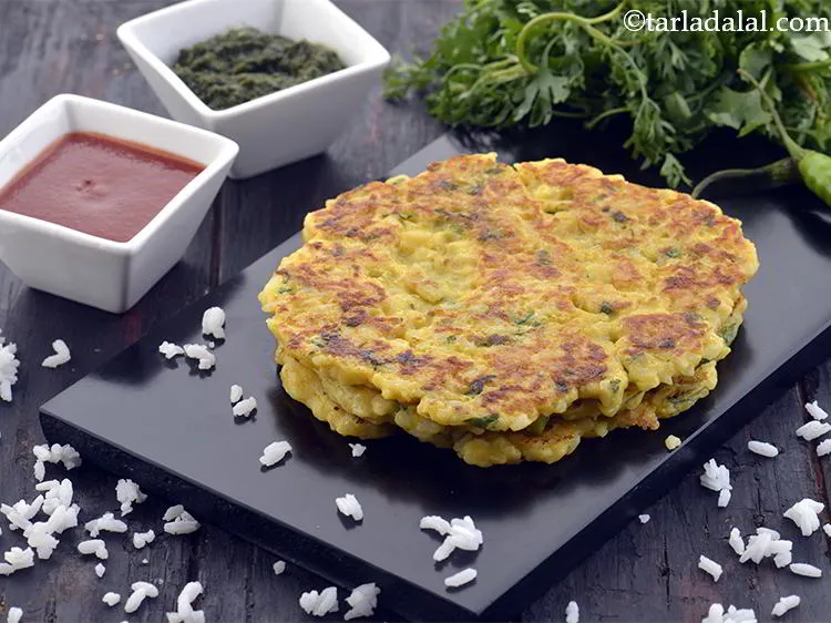 19. भात ना पूडला को | पुडला रेसिपी | क्विक भात ना पुडला | bhaat na poodla recipe in hindi | हरी चटनी या टोमैटो केचप के साथ परोसें।