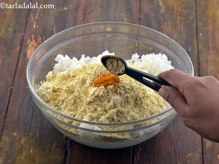 2. बेसन एक एजेंट के रूप में काम करता है, जो भात ना पूडला बनाने के लिए सभी सामग्रियों को आसानी से एक साथ लाता है।