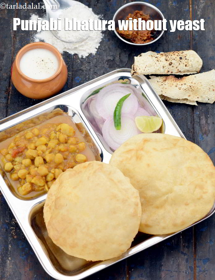 Bhatura recipe without Yeast, Punjabi Bhature Recipe Video by Tarla Dalal