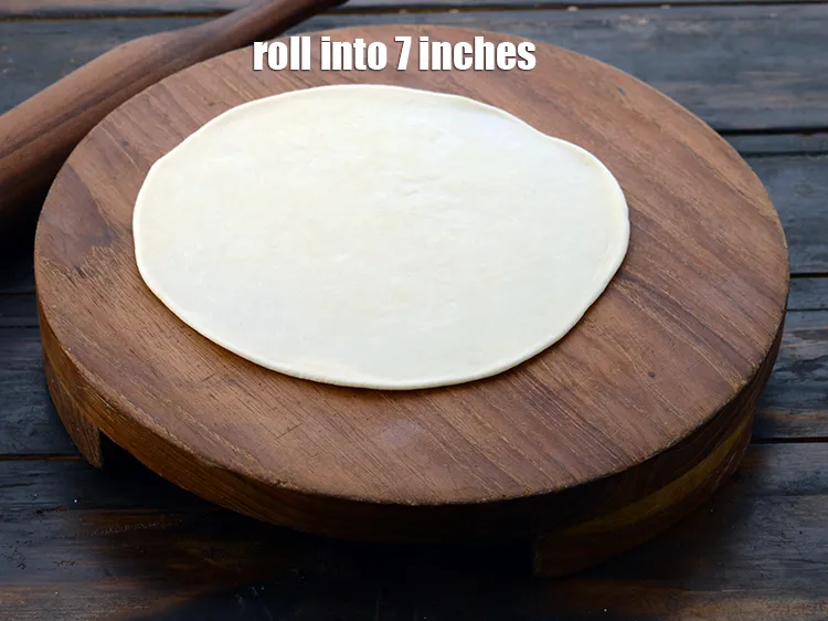 - Roll each portion of the dough into a 175 mm. (7") diameter thick circle.