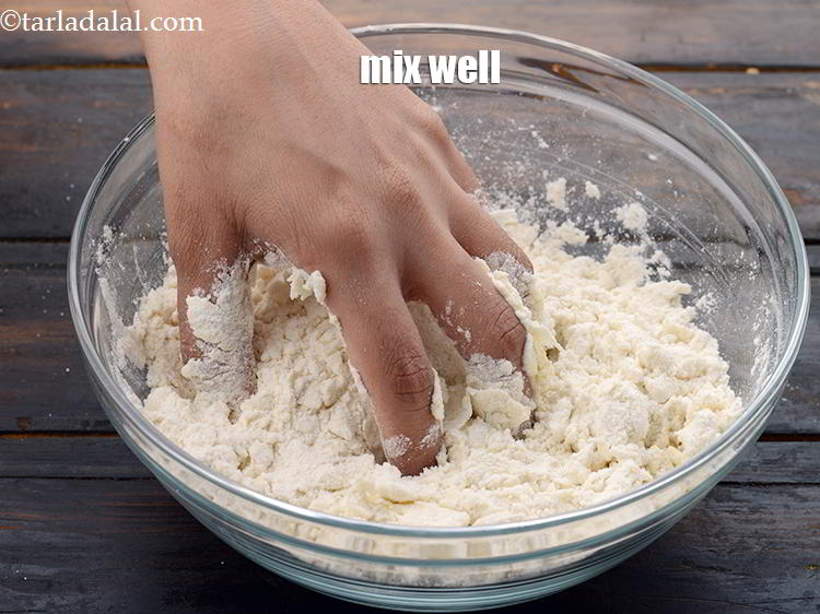 Add water little by little, we have used approx. 5 tbsp of water. Water will always depend on the quality of the plain flour.