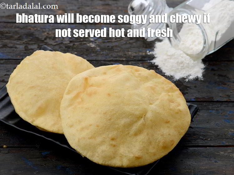 Remember that the bhatura will become soggy and chewy if not served hot and fresh.