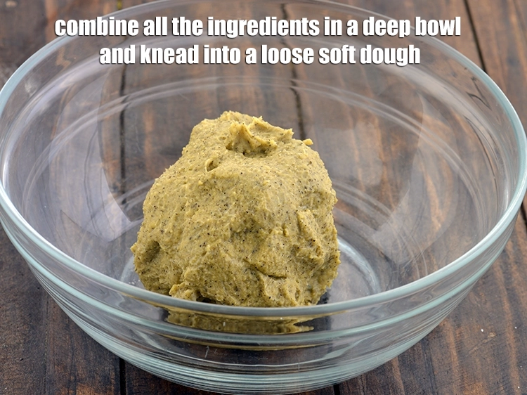 - Combine all the ingredients in a deep bowl and knead into a loose soft dough.