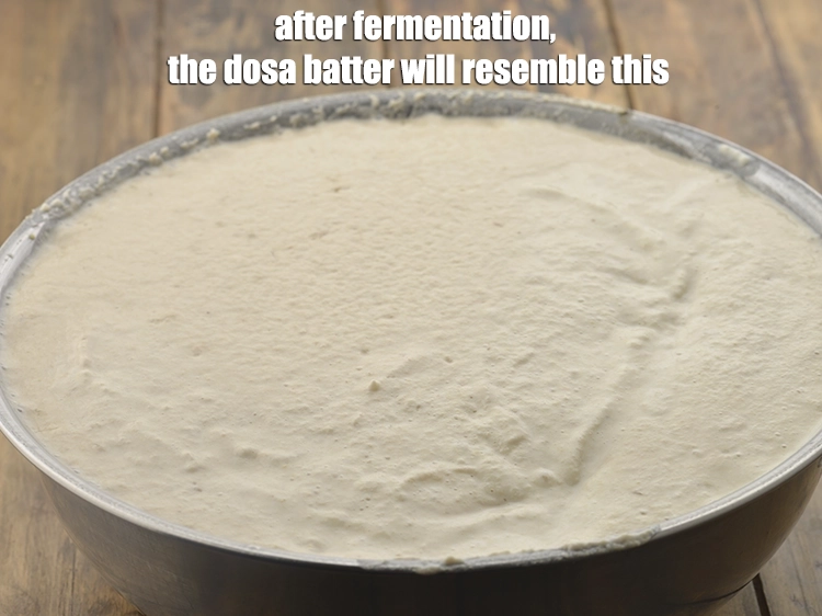 यदि आप फ्रिज से बचे हुए बैटर का उपयोग कर रहे हैं तो इसे कमरे के तापमान पर लाएं और फिर डोसा बनाएं। यह बहुत महत्वपूर्ण है अन्यथा आपको भूरे रंग का कुरकुरा डोसा नहीं मिलेगा।