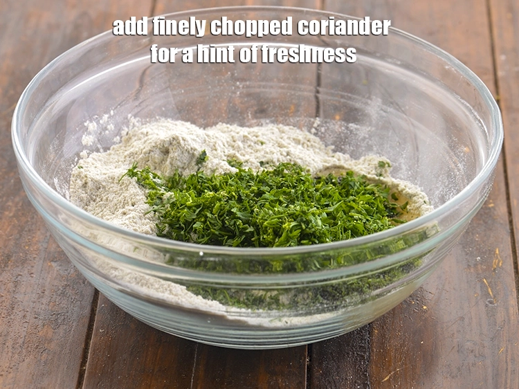 ताजगी देने के लिए 2 टेबल-स्पून बारीक कटा हुआ धनिया (finely chopped coriander) डालें।