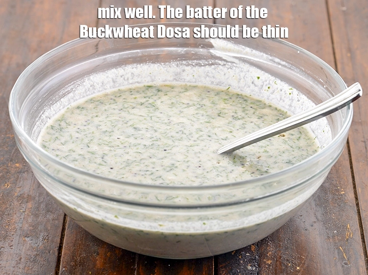 अच्छी तरह मिलाएँ। कुट्टू के डोसा का घोल पतला होना चाहिए।
