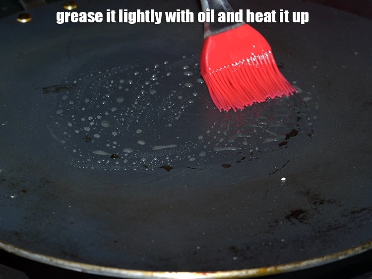 - एक नॉन-स्टिक तवा गरम करें और उसे तेल से हल्का-सा चुपड लें।