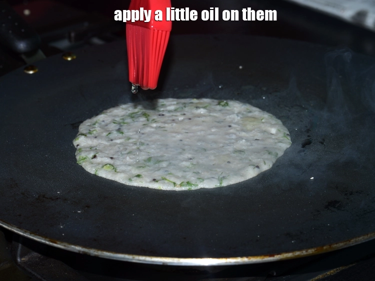 जब कुट्टू के डोसा पर छेद आना शुरू हो जाएं, तो उन पर थोड़ा सा तेल ( oil ) लगाएं।